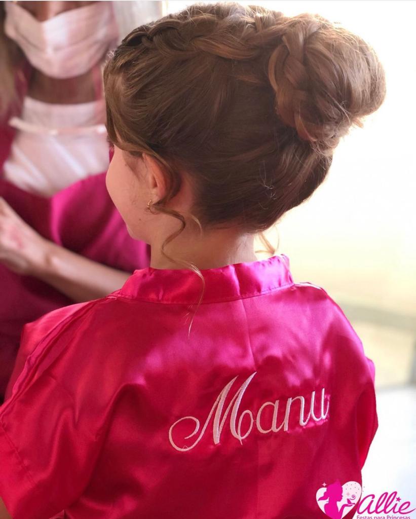 As meninas recebem roupão, faixa para o cabelo e chinelo para dar início ao relaxamento.